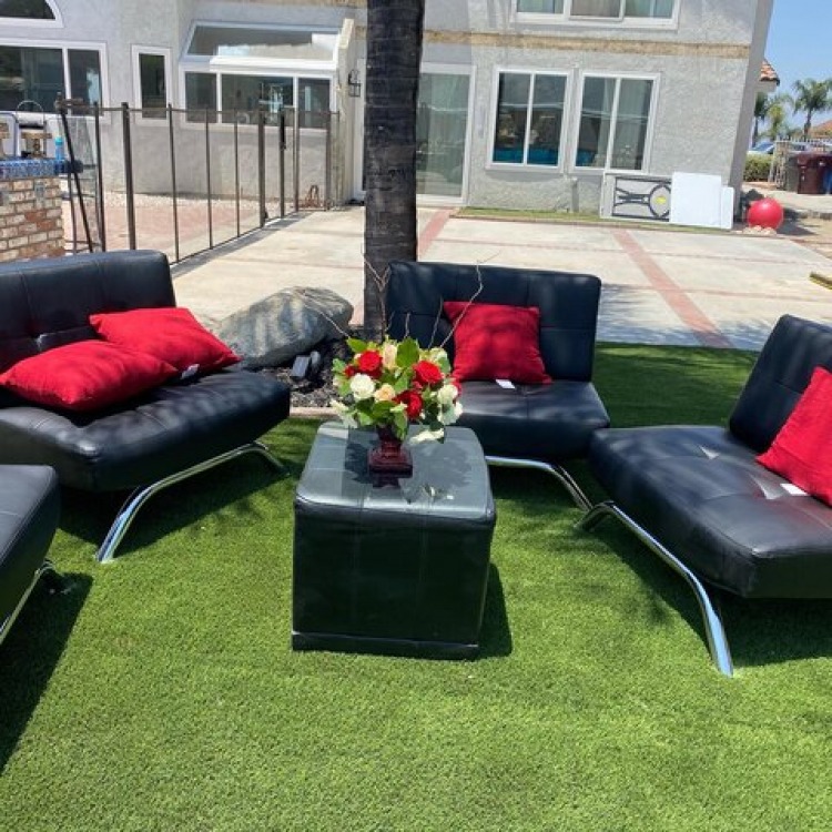 Black VIP 3 Lounge Chairs with 1 ottoman Set ( Pillows not included.)