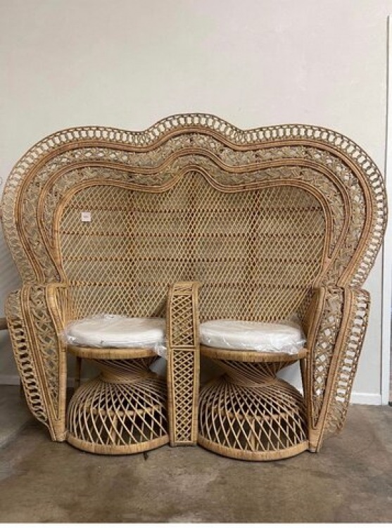 Introducing our exquisite Double Cobra Peacock Chairs, a perfect blend of elegance and comfort. These chairs are meticulously handcrafted with attention to detail, making them a stunning addition to any space.