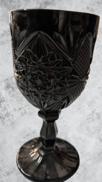 The deep black color of the glass is complemented by the mesmerizing amber tones that dance within, creating a captivating visual experience. This unique combination makes the goblet a standout piece that will add a touch of luxury to any table setting or special occasion.