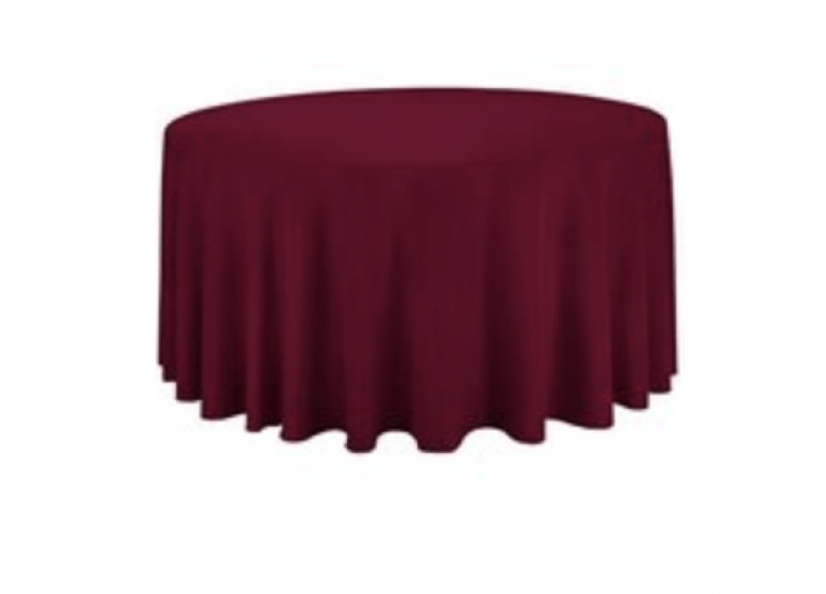 Burgundy Polyester 108in Round Tablecloth (Fits Our 48in Rou