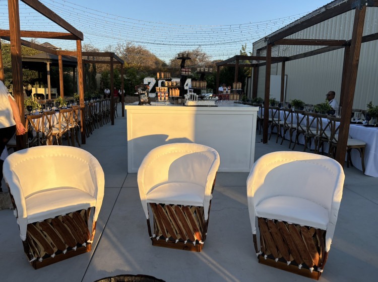 Embrace a touch of rustic elegance with our white equipales set. This duo of handcrafted Mexican chairs, made from durable leather and wood, provides both comfort and style, making them perfect for your next event. Ideal for creating an inviting seating area, these chairs are sure to impress your guests with their traditional yet chic appeal.