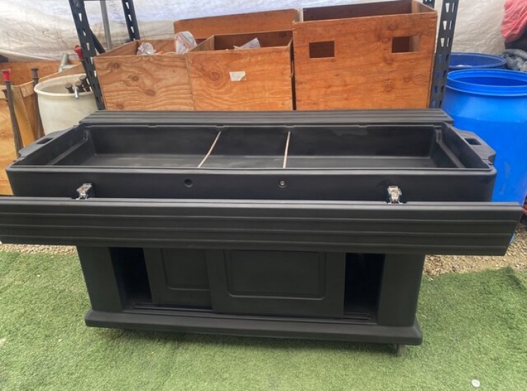 Introducing the Chill and Fill Buffet Table, the ultimate solution for your entertaining needs. This versatile and stylish table is designed to keep your food and beverages chilled, ensuring that your guests enjoy a refreshing and delightful dining experience.Crafted with precision and attention to detail, the Chill and Fill Buffet Table features a spacious and sturdy surface that can accommodate a wide array of dishes, snacks, and drinks. Whether you're hosting a backyard barbecue, a family gathering, or a corporate event, this table will effortlessly cater to your needs.