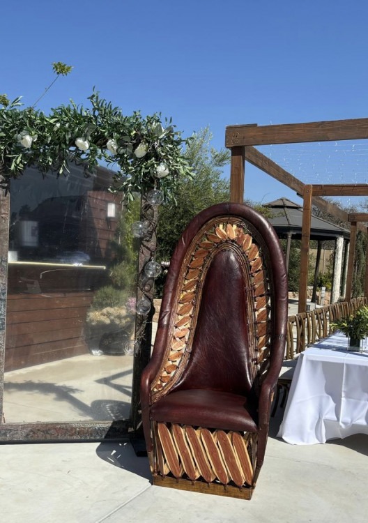 Step into the charm of old-world elegance with the Equipale throne chair. This artisanal masterpiece, handcrafted from Mexican pigskin leather and sturdy wood, commands a royal presence at any event. Perfect for weddings, quinceañeras, or themed parties, its unique design and comfortable seating make it a standout piece for photos and grand entrances. Elevate your occasion with a touch of rustic luxury.