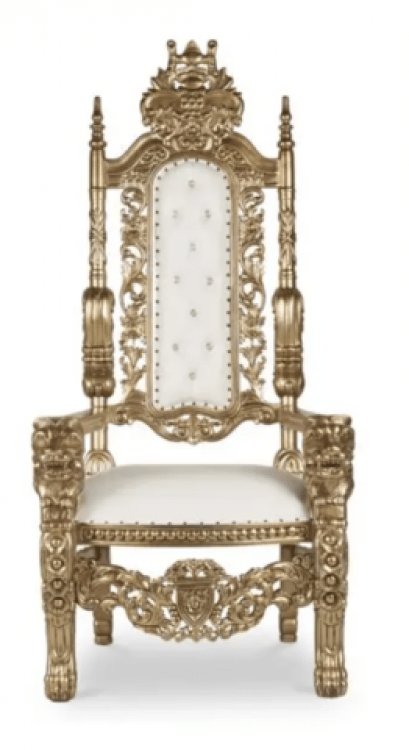 Beautiful Gold and White Throne With Detailed Lions Faces On End Of Arm Rest. Great Fit For A Queen or King For The Night.