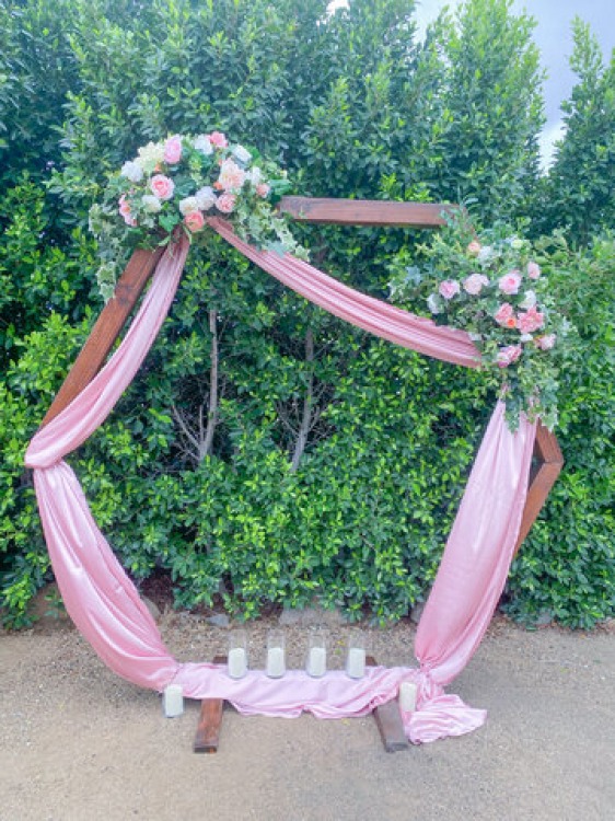 Crafted with precision and attention to detail, the Hexagon Draped Arch features a six-sided structure, creating a modern and contemporary look. Its geometric design adds a touch of sophistication and elegance to any setting, making it the perfect backdrop for weddings, parties, corporate events, or photo shoots.